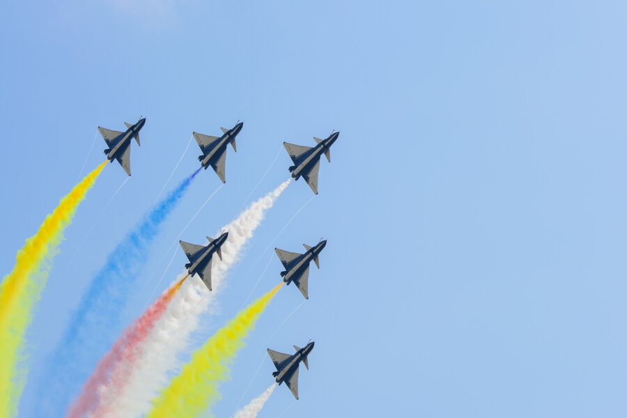 Am Morgen Transfer zur China Airshow auf dem Flugplatz Zhuhai. Am Nachmittag werden die Firmen ihre Flugzeuge in der Luft zeigen und auch verschiedene Kunstflugstaffeln, wie das Chinese Bayi Aerobatic Team mit 6 J-10 Flugzeugen oder PLAAF August 1st. werden ihr Können vorführen.